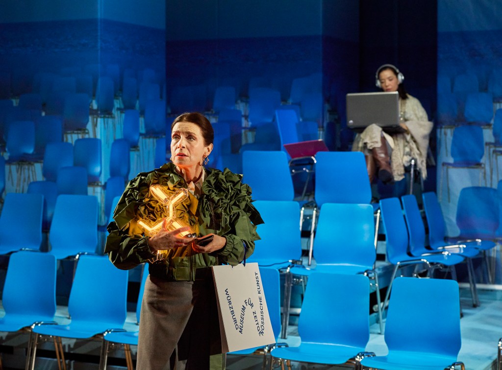 „Fast wie bei Beckett: In einem Rathaus-Wartesaal, in dem die Zeit stillzustehen scheint, begegnen sich vier Bürger. Und reden los. Aufs herrlichste. Annika Henrichs packendes Konversationsstück „Das Rathaus – Liebe Leute“ kommt in der Regie von Tamó Gvenetadze in Würzburg zur Uraufführung. Mit Flow und Glow.“